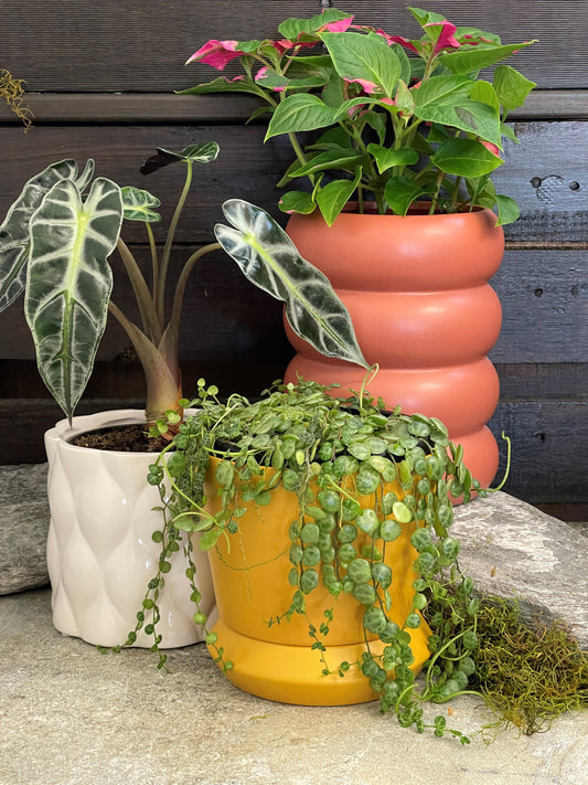An ever rotating selection of luscious hand picked potted plants. All of our beautiful plants are presented in a box or bag ready to be delivered to their loving new home.